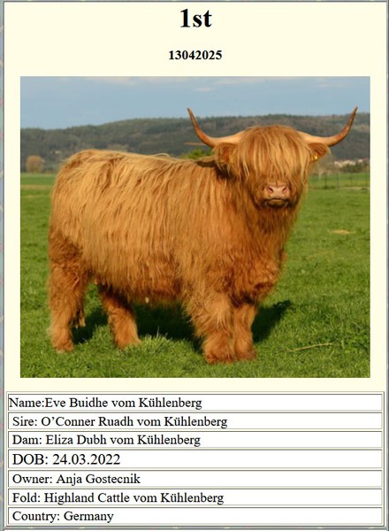 Diese zuckersüße Kuschelkuh ''Eireen vom Kühlenberg'' ist ab Mitte Mai bei uns zu erwerben.